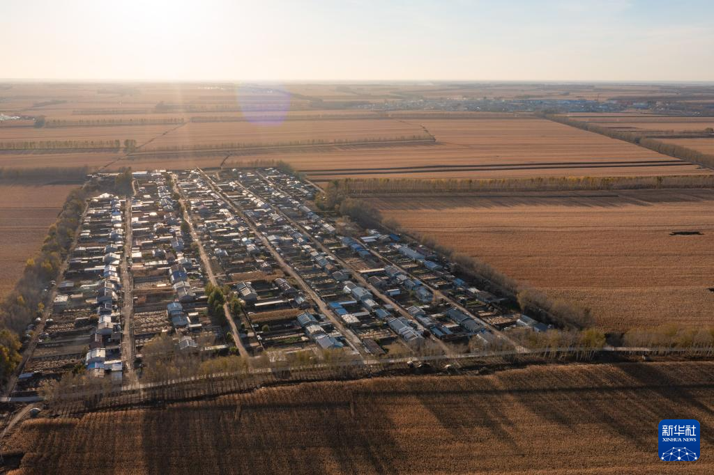 在肇东市五里明镇东升村拍摄的耕地和村镇(无人机照片,10月11日摄)。