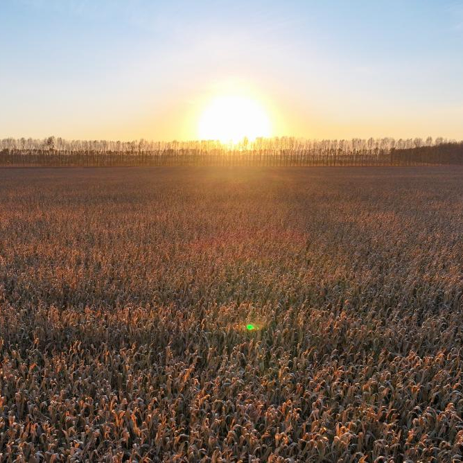 日落时分在肇东市五里明镇东升村拍摄的玉米地(无人机照片,10月11日摄)。