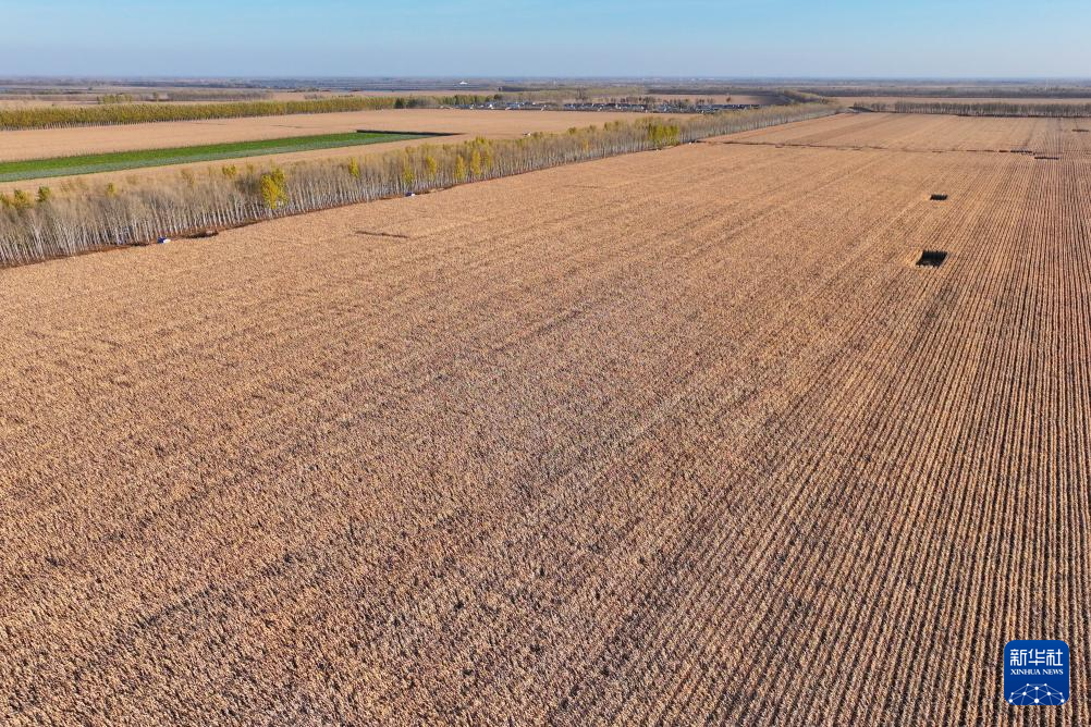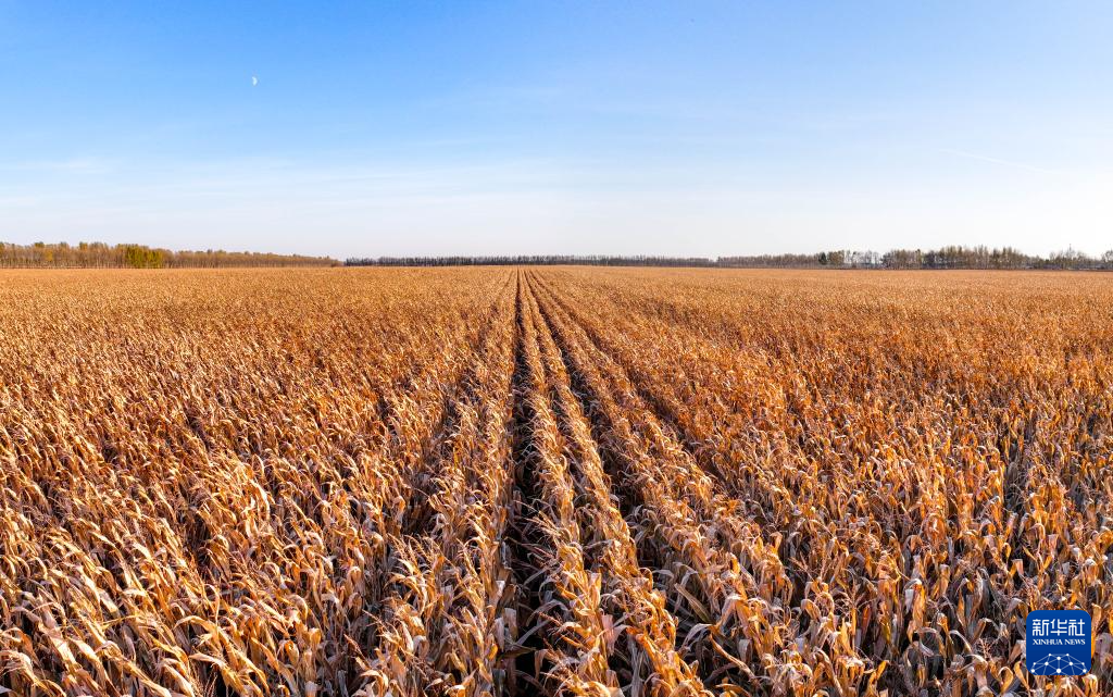 在肇东市五里明镇东升村拍摄的玉米地(无人机全景照片,10月11日摄)。