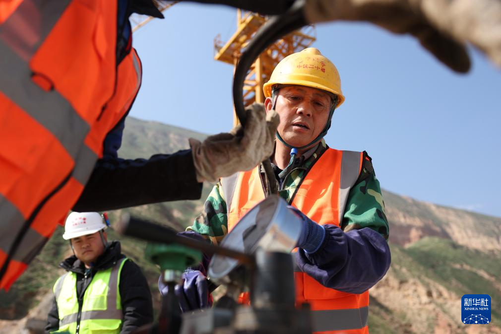 10月12日,中铁二十局的建设者在兰合铁路本池沟大桥上施工作业。