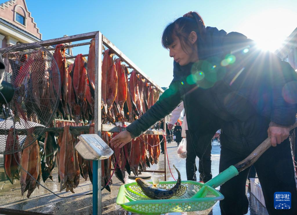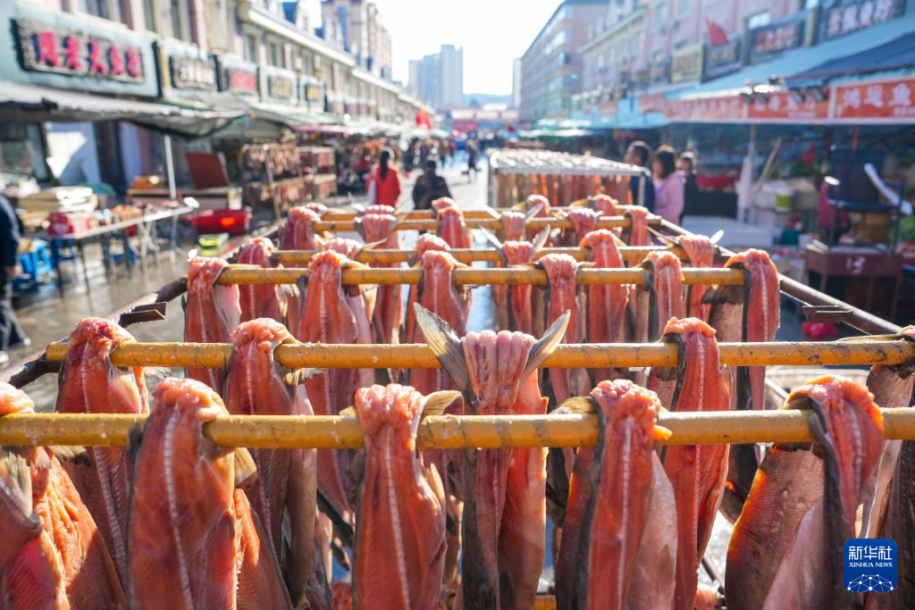 10月11日拍摄的黑龙江省抚远市的东极鱼市。