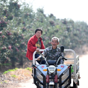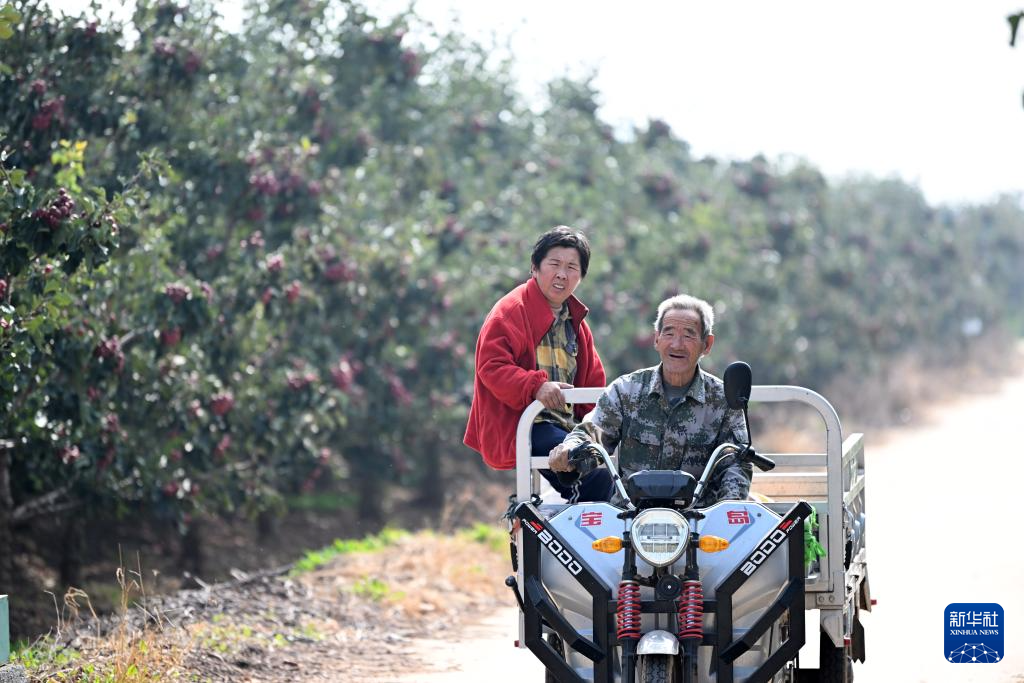 10月12日,在天津市蓟州区马伸桥镇育英洼村,村民驾车准备前往果园收果。