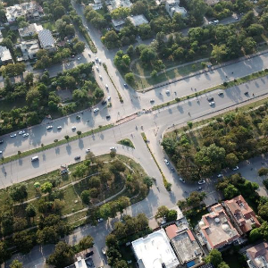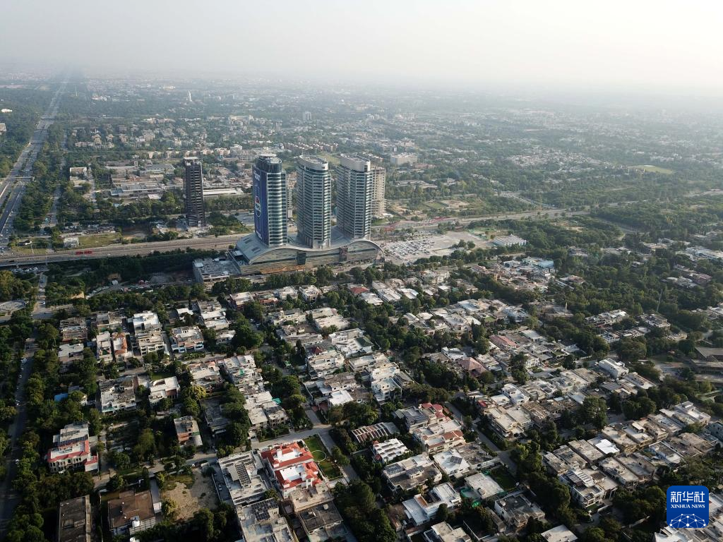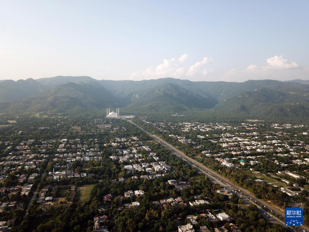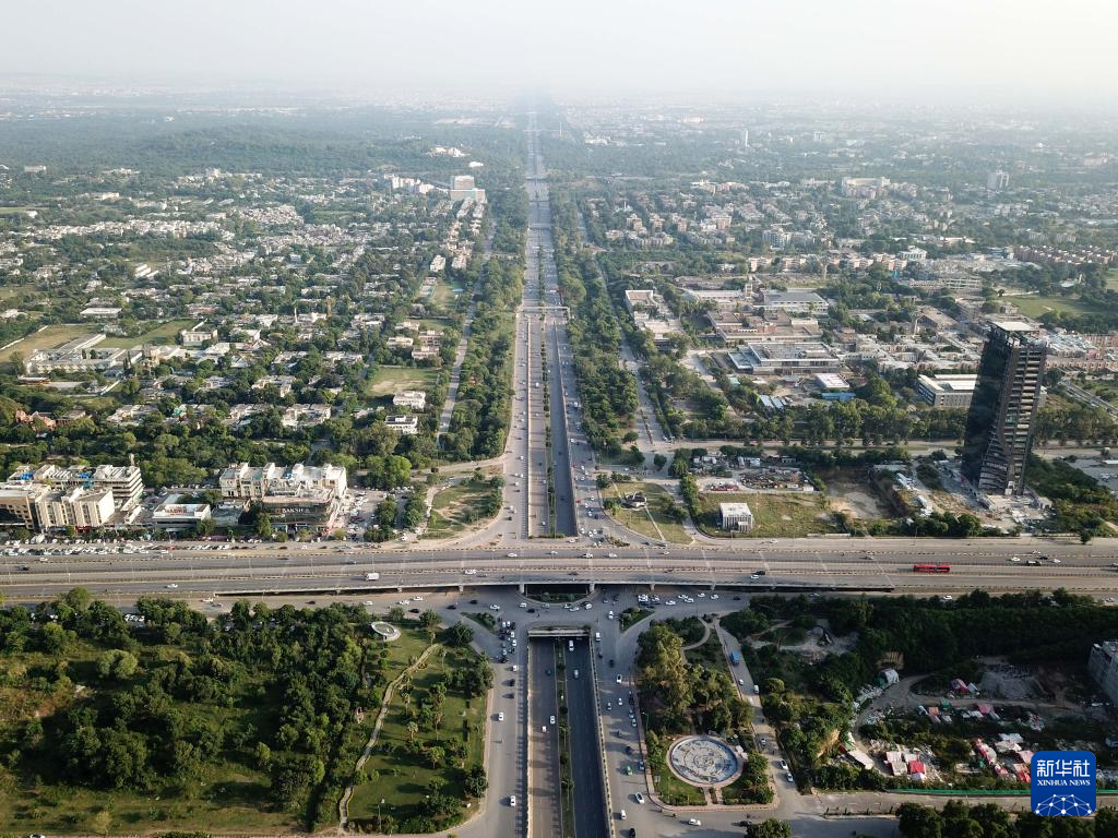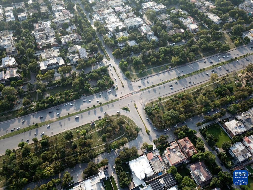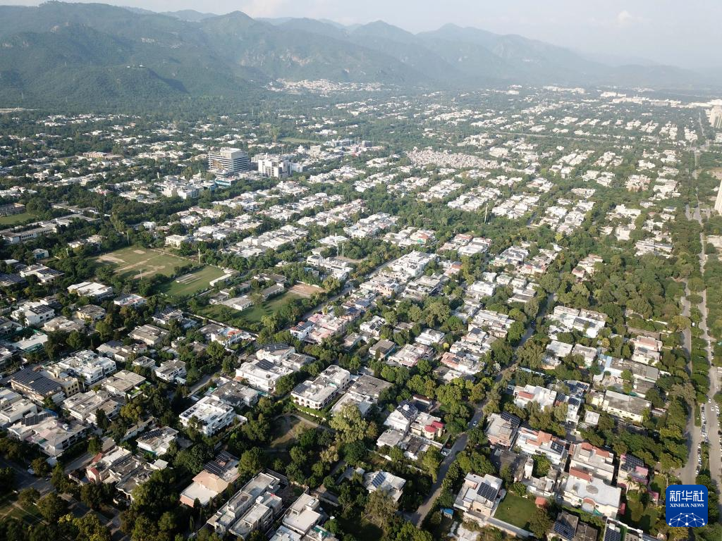 这是在巴基斯坦首都伊斯兰堡拍摄的市区街景(无人机照片,10月8日摄)。
