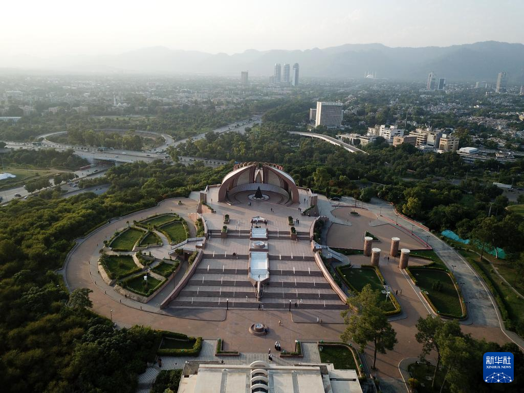 这是在巴基斯坦首都伊斯兰堡拍摄的标志性建筑——巴基斯坦纪念碑(无人机照片,10月8日摄)。