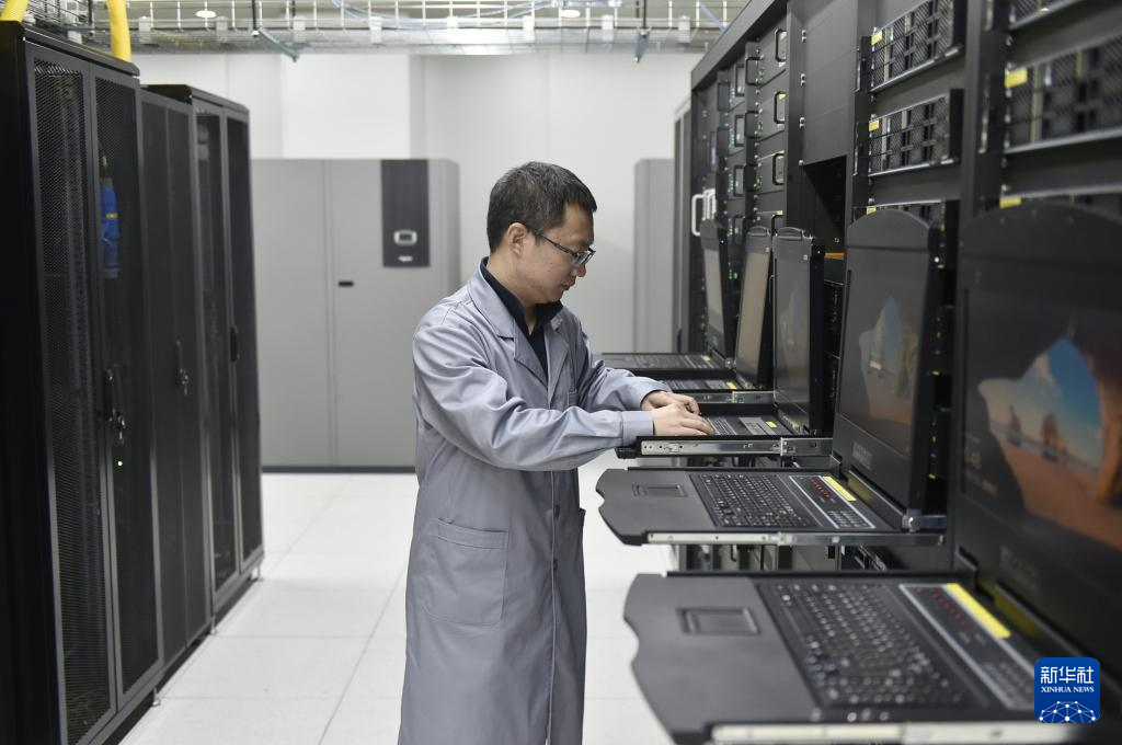 10月11日,技术人员在黑龙江佳木斯气象卫星地面站内检查设备运行情况。