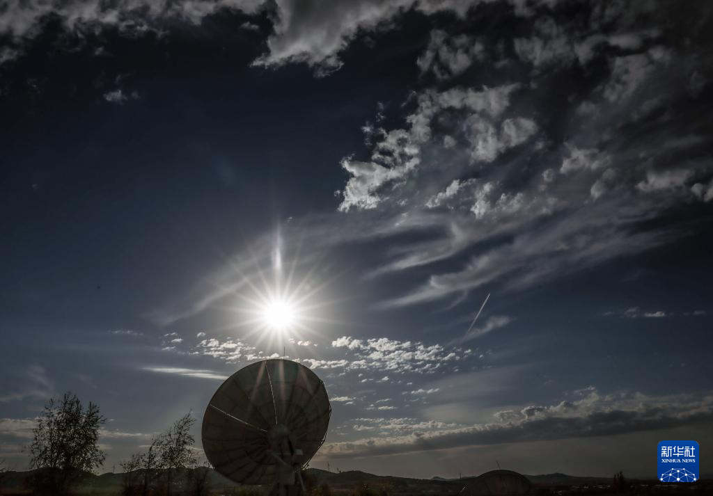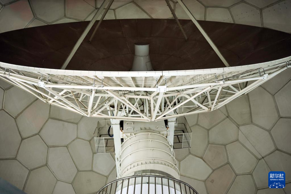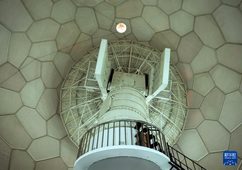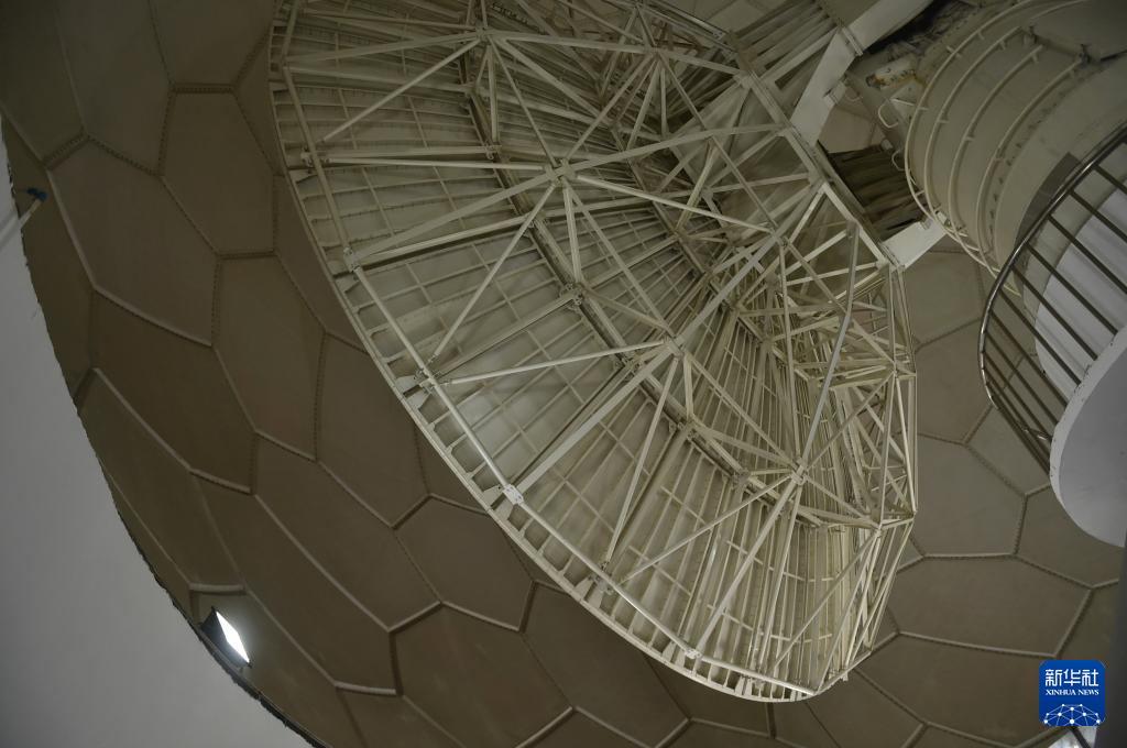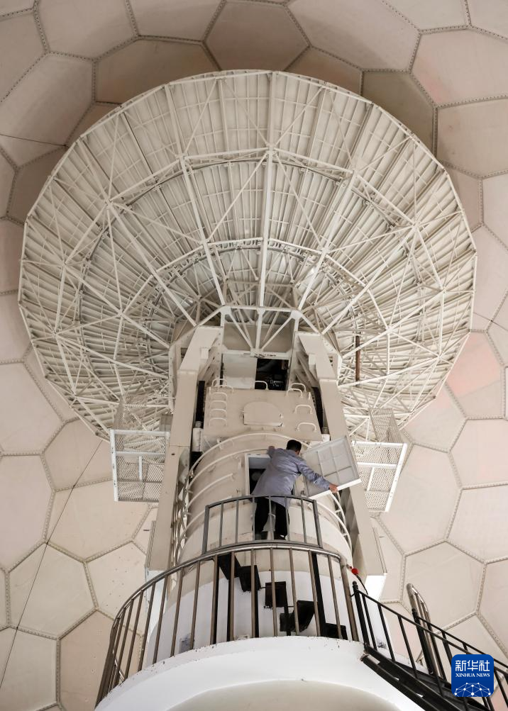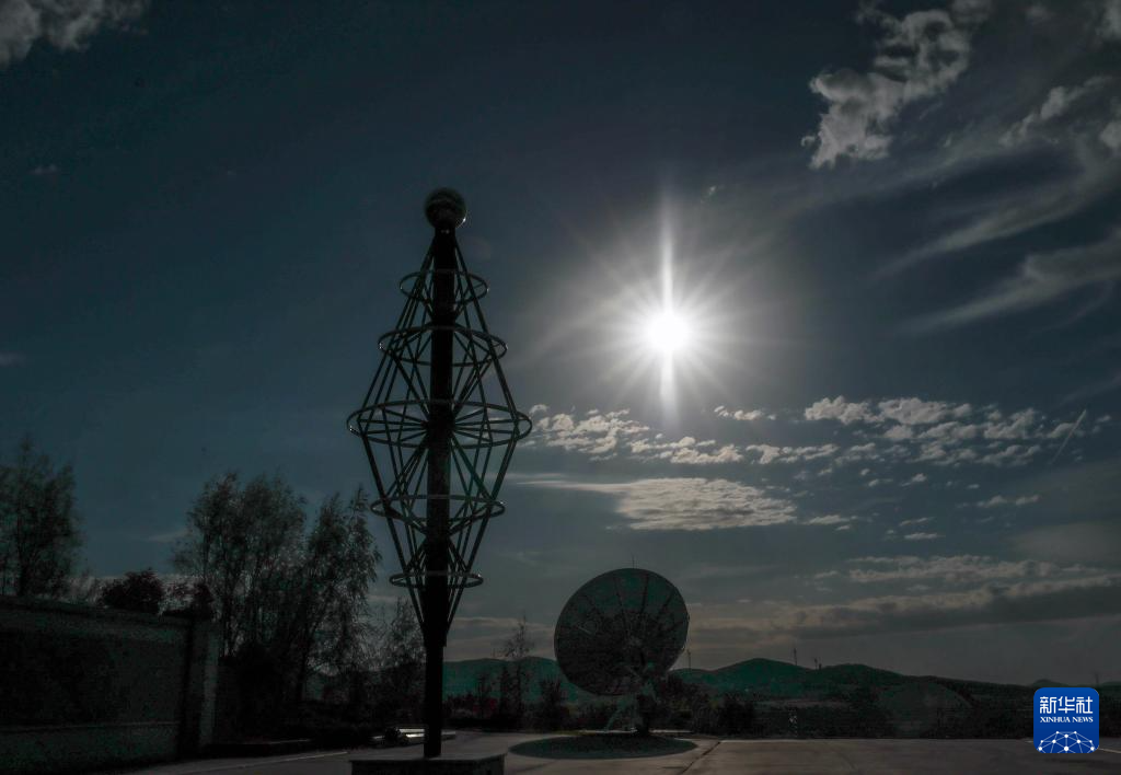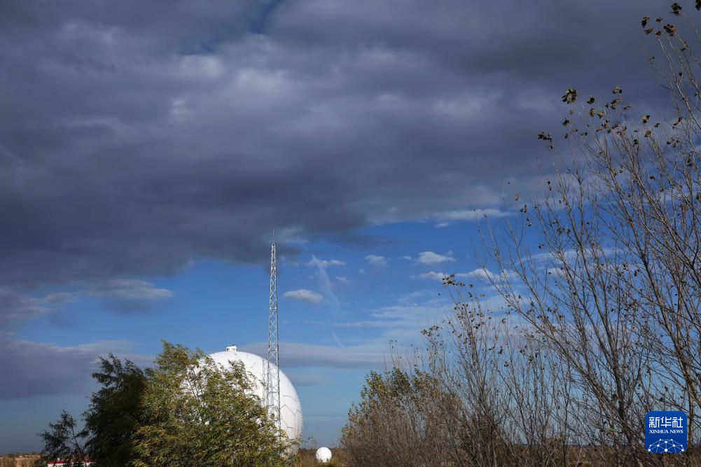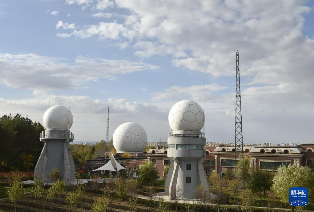 10月11日在黑龙江佳木斯气象卫星地面站拍摄的卫星数据接收天线。