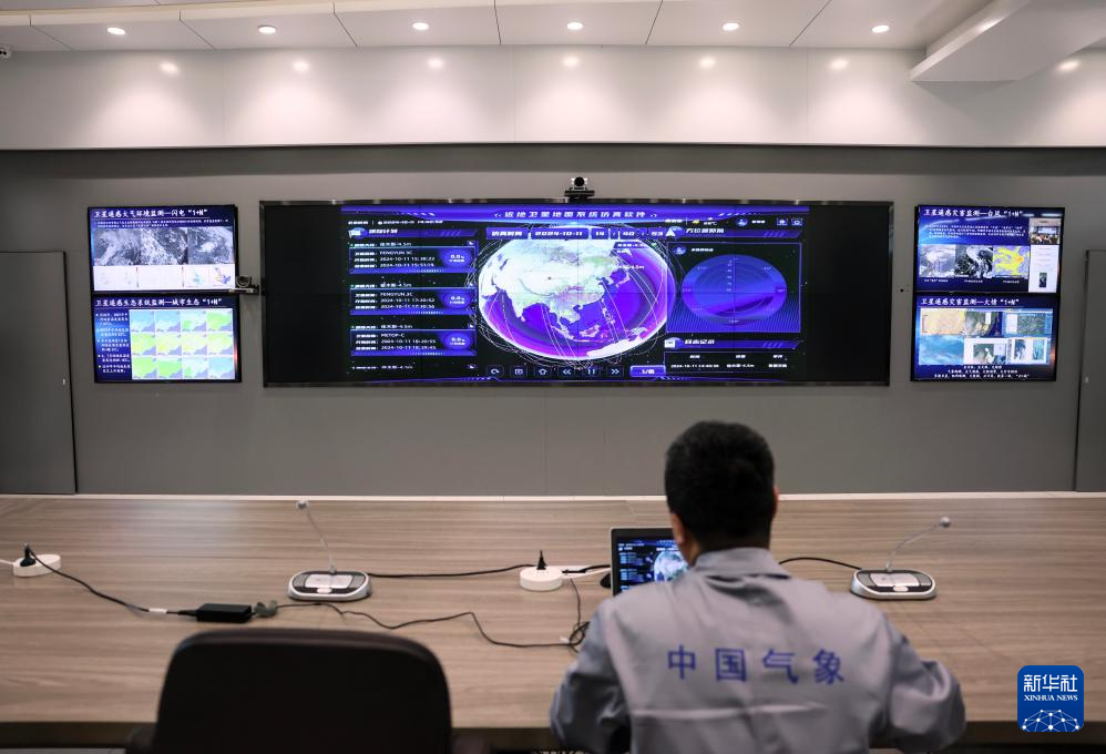 10月11日,技术人员在黑龙江佳木斯气象卫星地面站内工作。