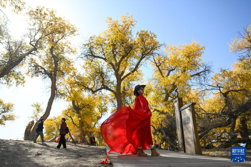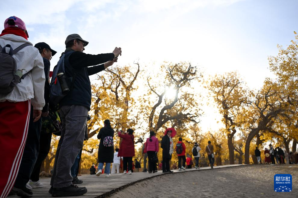 近日,内蒙古阿拉善盟额济纳旗的胡杨林进入最佳观赏期,吸引众多游客前来观赏游玩。10月1日至10月12日额济纳旗总旅游人次超过136万,同比增长9.83%。