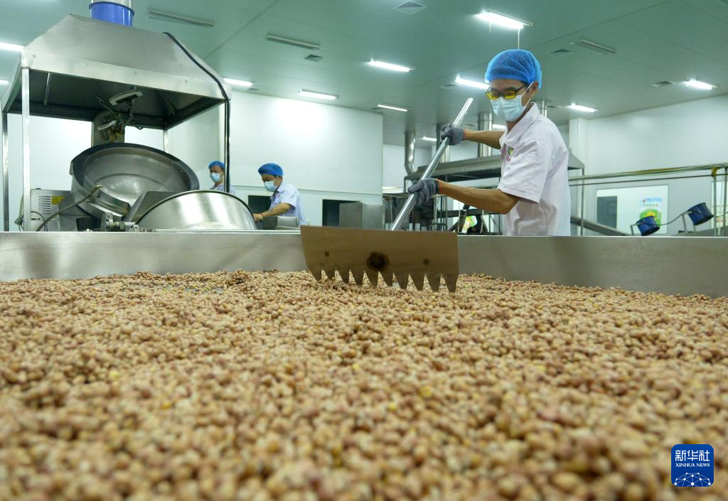 秋收时节,河南省驻马店市正阳县的花生喜获丰收,村民在田间地头收获、晾晒花生,油料加工车间一片繁忙,电商直播间叫卖吆喝声不断,花生食品加工厂香味扑鼻。
