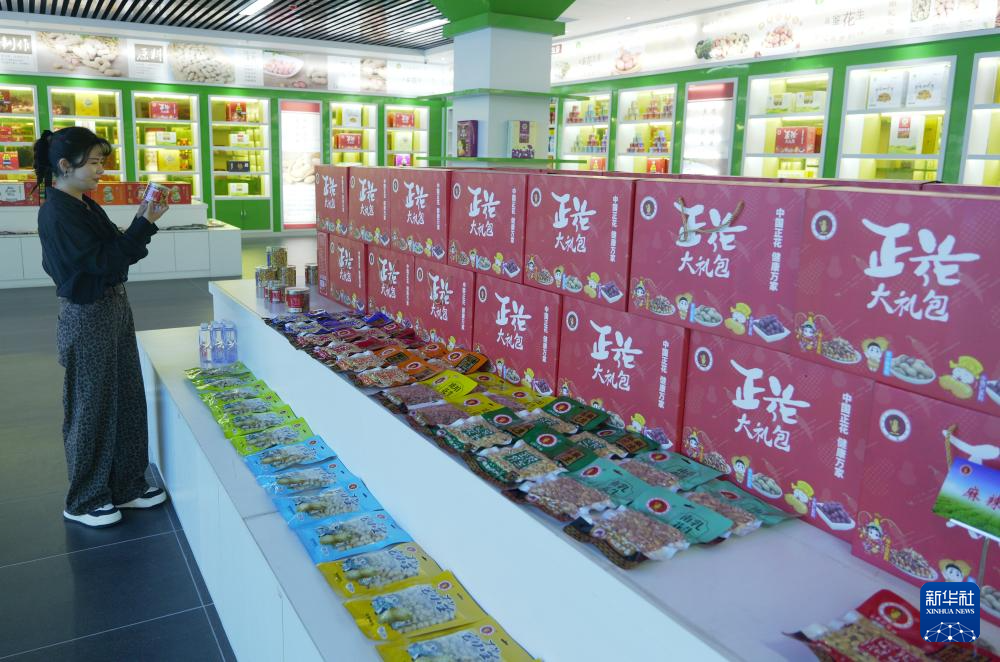 10月11日,在驻马店市正阳县一家食品公司,顾客在选购花生食品。