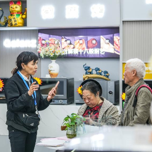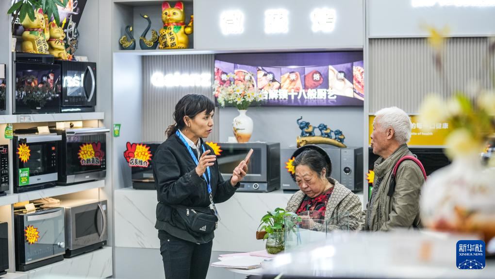 销售人员在向市民推介以旧换新商品(10月11日摄)。