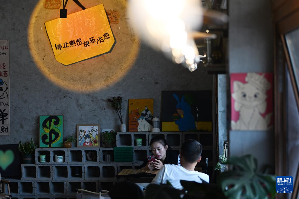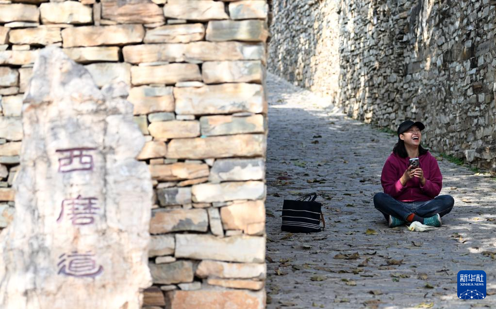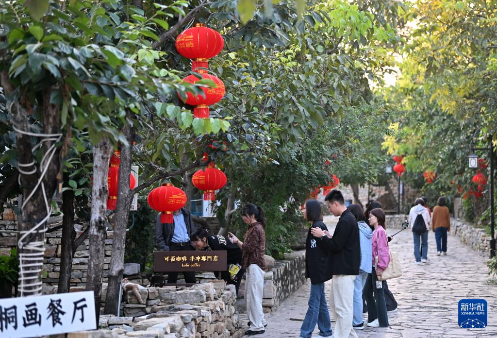 游客在西井峪村的餐厅内休息(10月12日摄)。