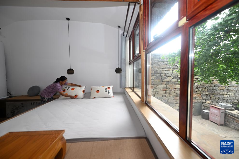 在西井峪村的一家民宿内,工作人员在整理房间(7月6日摄)。