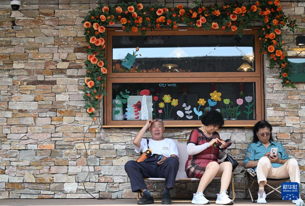 游客在西井峪村的一家民宿前休息(7月6日摄)。
