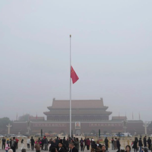 10月14日,为悼念吴邦国同志,首都天安门下半旗志哀。