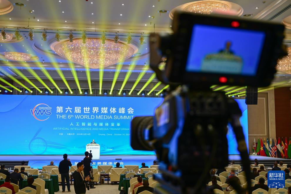 这是10月14日在新疆国际会展中心拍摄的第六届世界媒体峰会全体会议现场。