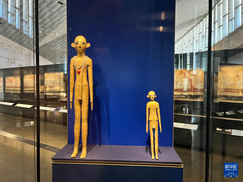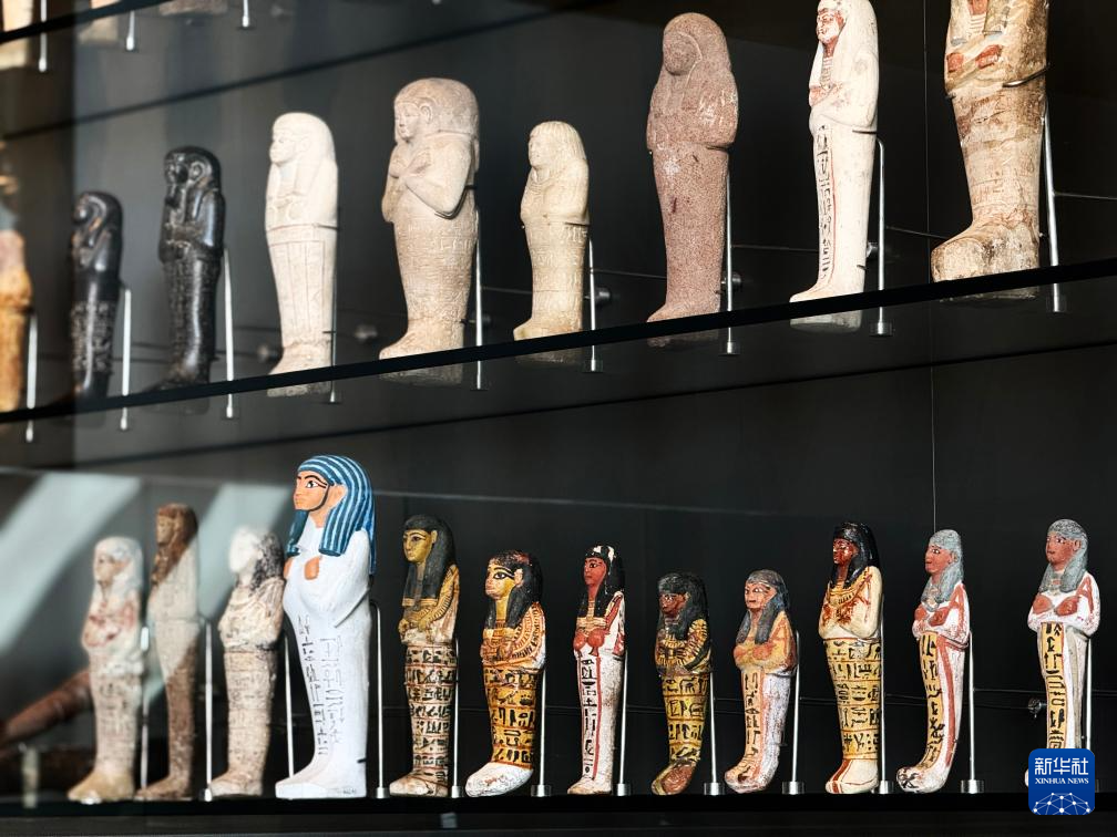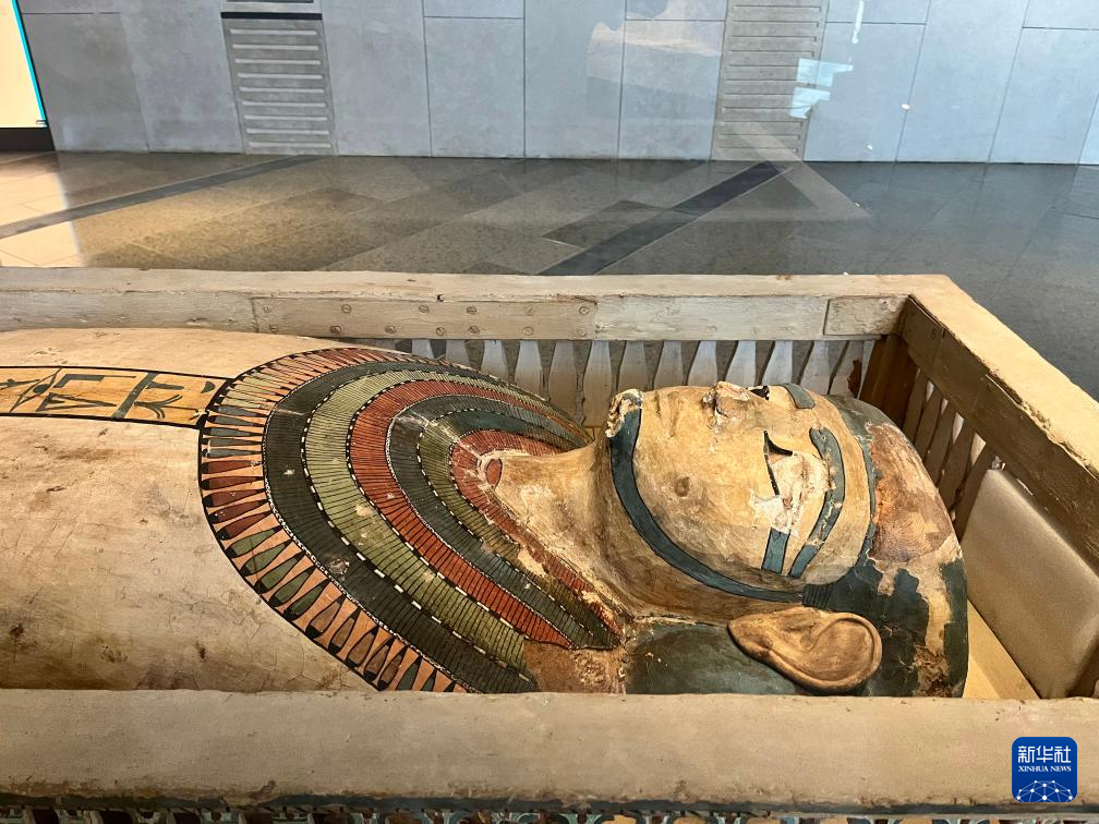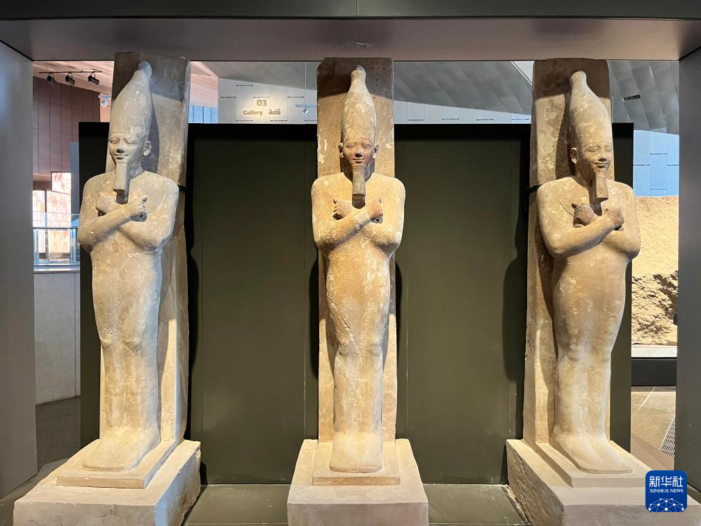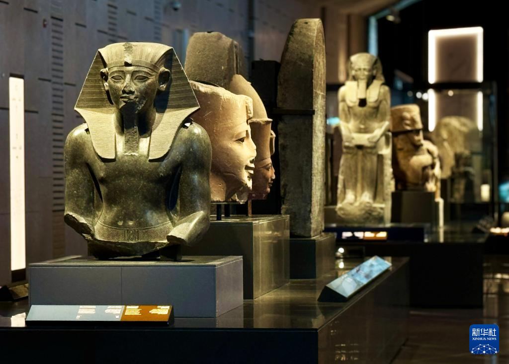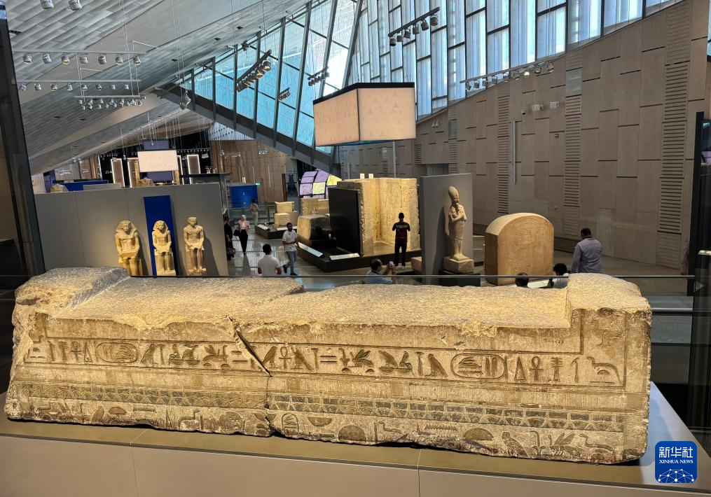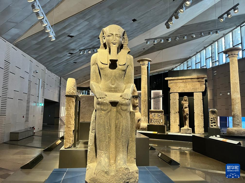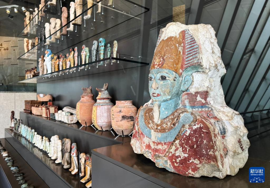 这是10月15日在埃及吉萨的大埃及博物馆展厅拍摄的展品。