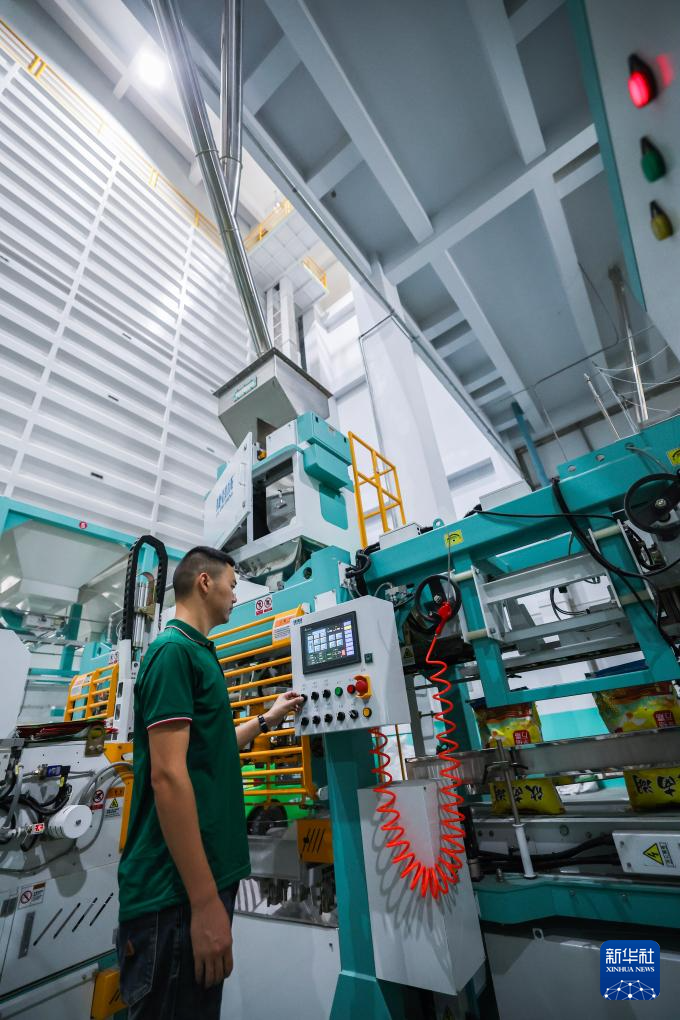 10月15日,在位于嘉兴市南湖区余新镇曹王村的浙江绿康米业有限公司的现代化加工车间,青创客应超查看自动化包装流水线运行情况。该车间自动化流水线日加工大米200吨。