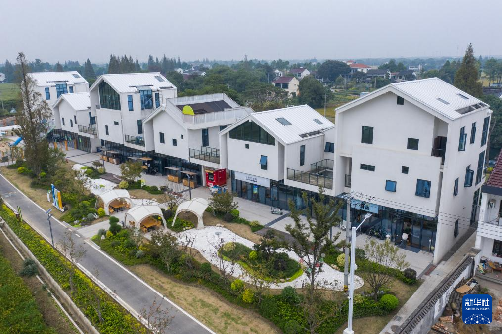 这是10月15日在位于嘉兴市南湖区余新镇长秦村的“渔里问道”和美乡村示范片区内拍摄的民宿餐饮、宠物寄养等青创客开办的商铺(无人机照片)。