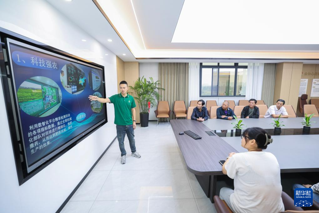 10月15日,在位于嘉兴市南湖区余新镇曹王村的浙江绿康米业有限公司,青创客应超给农户介绍农业现代化、数字化技术。