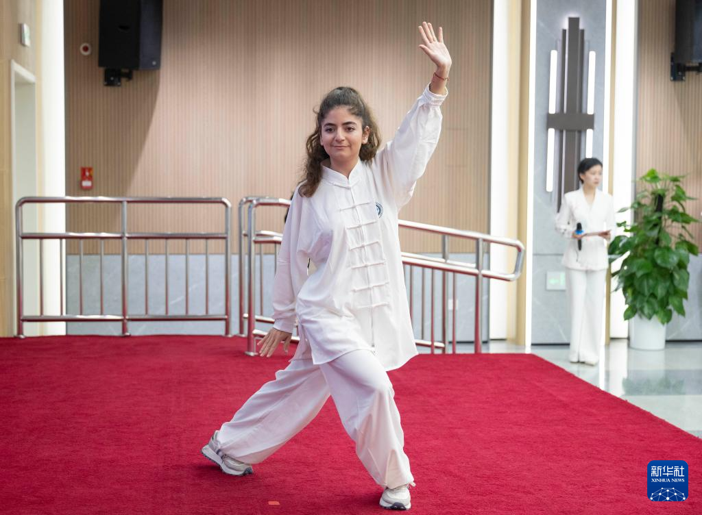 10月15日,在北京按摩医院朝阳院区举行的中医药健康日活动上,德国友人蒂娜表演八段锦。