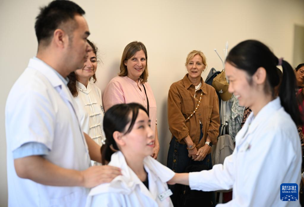 10月15日,在北京按摩医院朝阳院区,外国友人参观中医推拿。