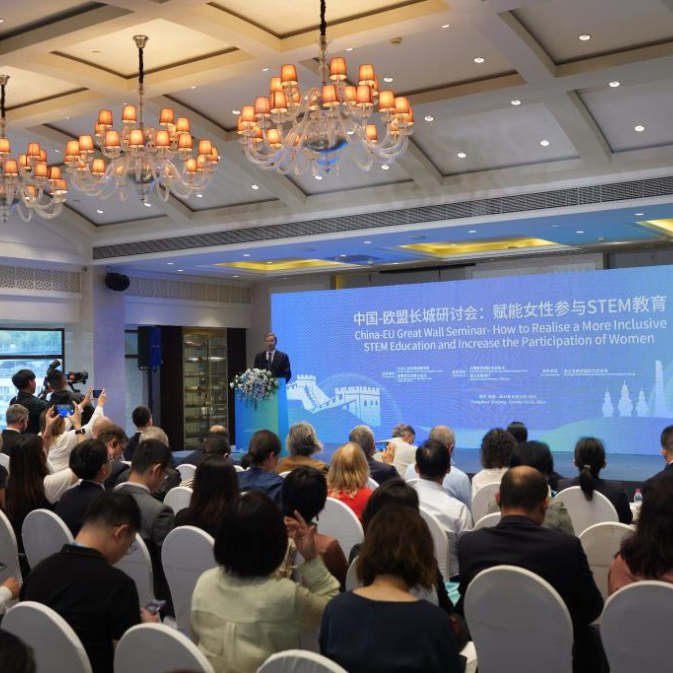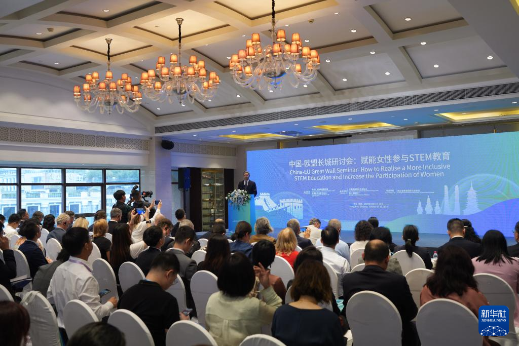 当日,中国-欧盟长城研讨会在浙江杭州开幕。长城研讨会是中欧高级别人文交流对话机制框架下的教育政策对话平台,今年是首次举办。双方教师、教育工作者和教育智库代表围绕“赋能女性参与STEM教育”主题进行研讨交流。
