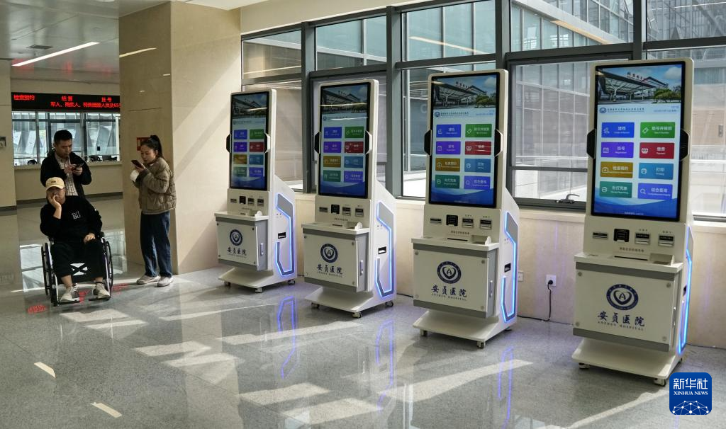 这是北京安贞医院通州院区就诊大厅里的一站式缴费设施(10月14日摄)。