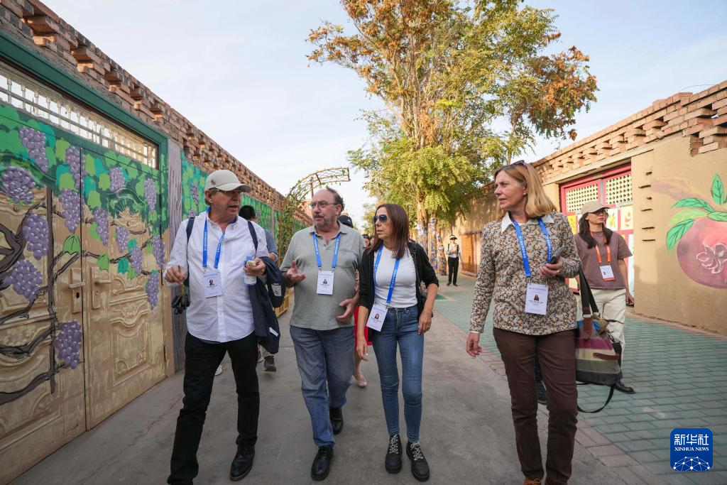 10月15日,与会嘉宾在吐鲁番市高昌区亚尔镇新城片区新城西门村参访。