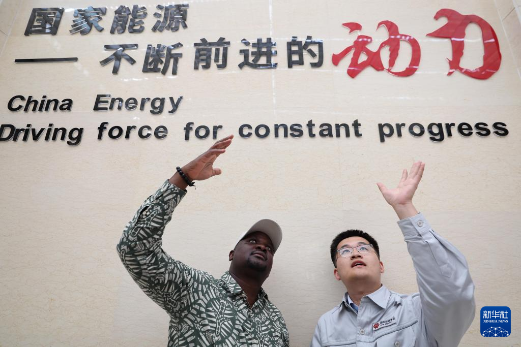 10月15日,与会嘉宾在国家能源集团龙源吐鲁番新能源有限公司参访时与工作人员交流。