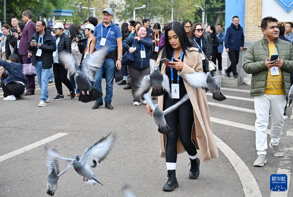 10月15日,与会嘉宾在伊宁市喀赞其民俗旅游区参观。
