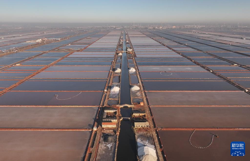 时下正值秋盐收获季,河北省唐山市曹妃甸区南堡盐场的工人利用晴好天气抢收秋盐,“百里盐池”呈现出一片繁忙景象。