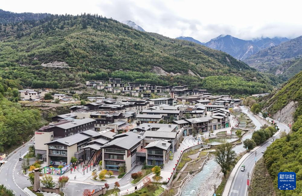 这是10月10日拍摄的九寨沟县中国绿发华美胜地度假区(无人机照片)。