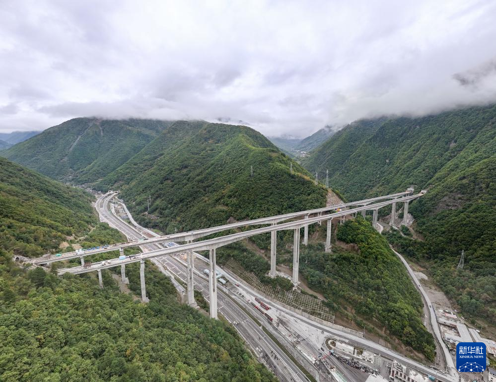 这是10月11日拍摄的正在建设中的九寨沟—绵阳高速公路(无人机照片)。九绵高速开通后,从成都至九寨沟县的时间将从原来的8小时缩短至4小时。