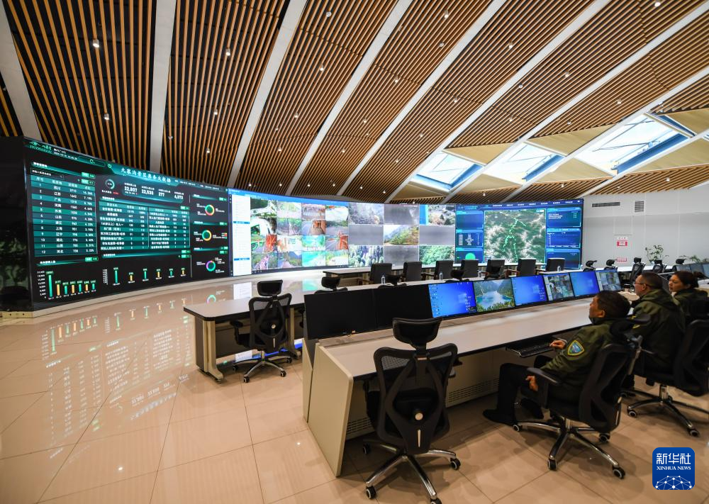 这是10月10日在九寨沟景区指挥中心拍摄的智慧景区系统。