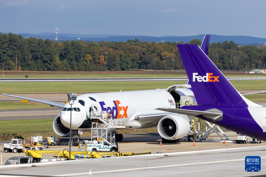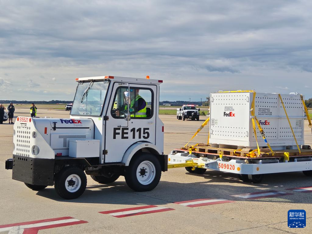 10月15日,大熊猫“宝力”和“青宝”搭乘专机抵达美国首都华盛顿附近的杜勒斯国际机场。