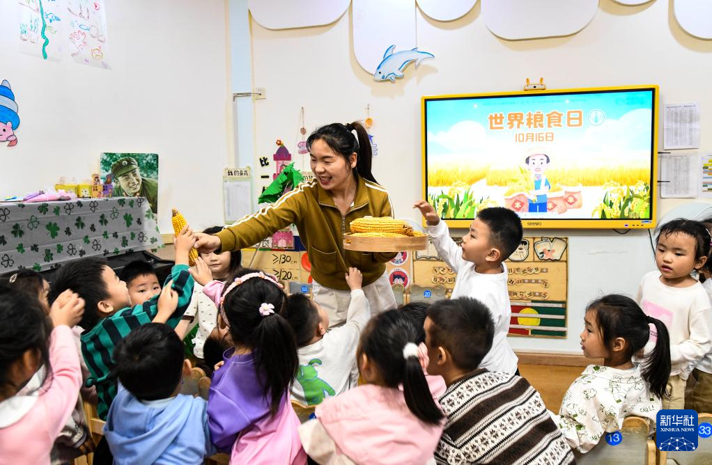 当日是世界粮食日,各地开展主题教育活动,增强孩子们爱惜粮食、节约粮食的意识。