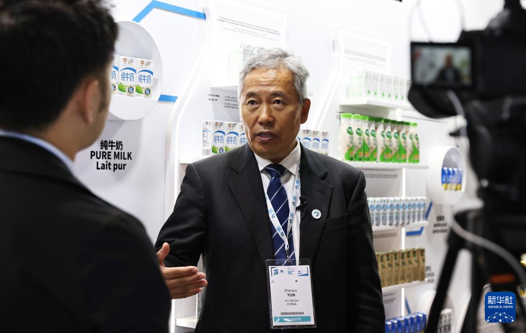 10月15日,在法国巴黎举行的2024世界乳业峰会上,国际乳品联合会董事云战友接受采访。