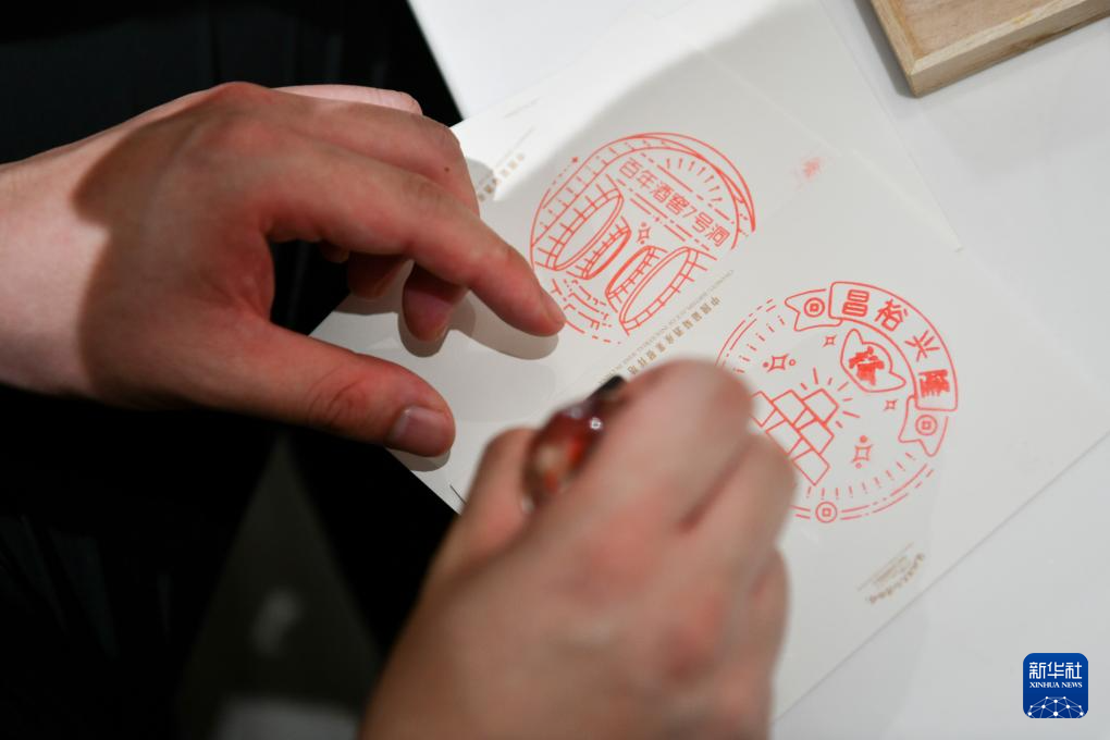 10月17日,参观者在位于山东烟台的张裕酒文化博物馆盖纪念章。
