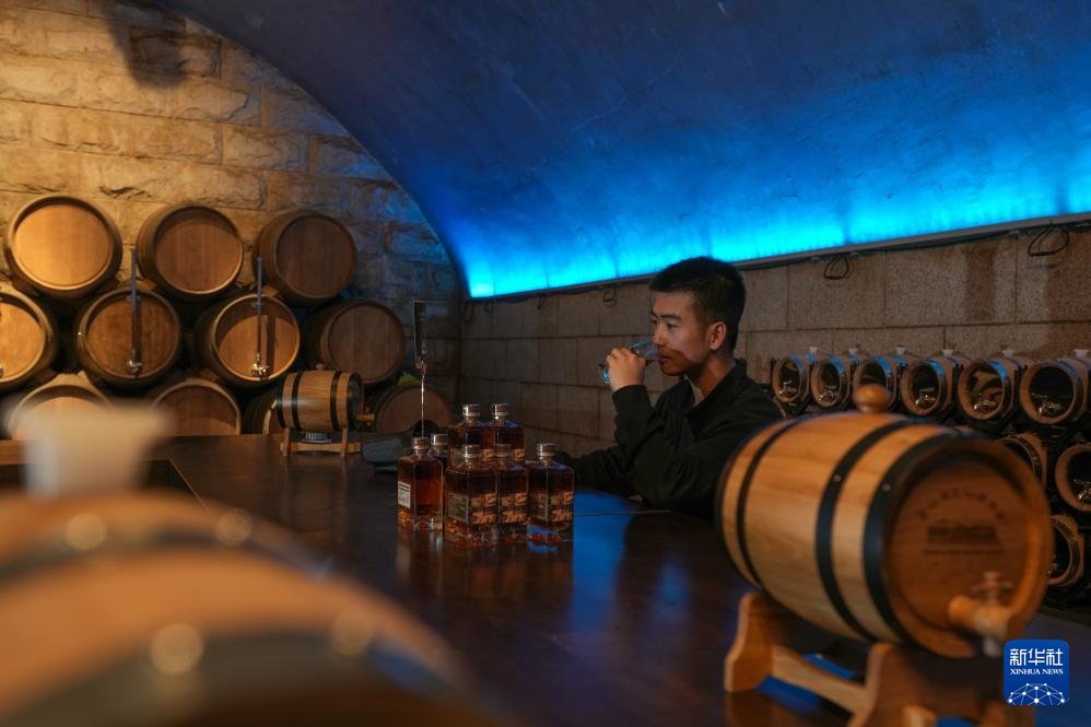 10月17日,在位于山东烟台的张裕酒文化博物馆,工作人员展示产品。