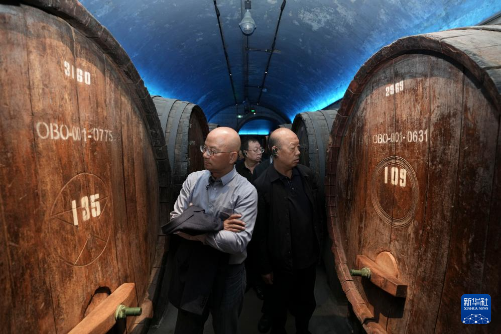 10月17日,参观者在位于山东烟台的张裕酒文化博物馆张裕百年酒窖内品酒。