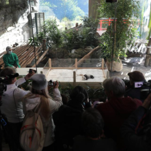 自16日起,德国柏林动物园今年新出生的一对雌性大熊猫双胞胎幼崽将轮流与公众见面,展出时间为每天下午一小时。目前两只大熊猫幼崽健康状况良好,体重已从出生时的169克和136克增长至约2500克。