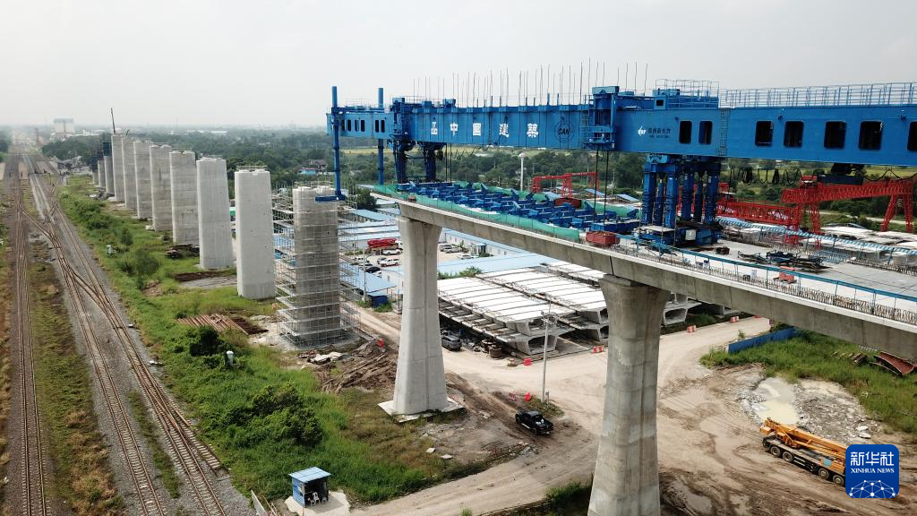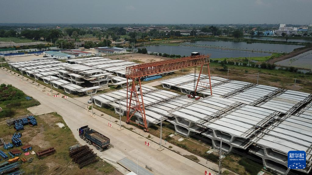 这是10月11日拍摄的位于泰国大城府的中泰高铁项目4-3标段施工现场。