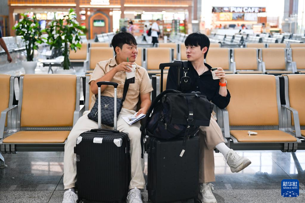 10月12日,在老挝万象中老铁路万象站候车厅,两名乘客在等候列车。