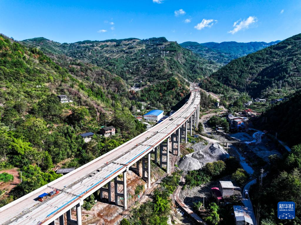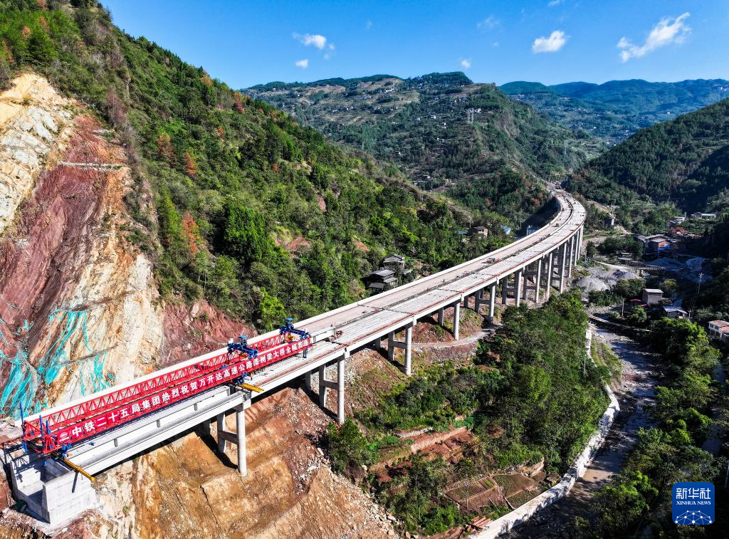 这是10月18日拍摄的建设中的万开达高速公路漆树梁大桥(无人机照片)。
