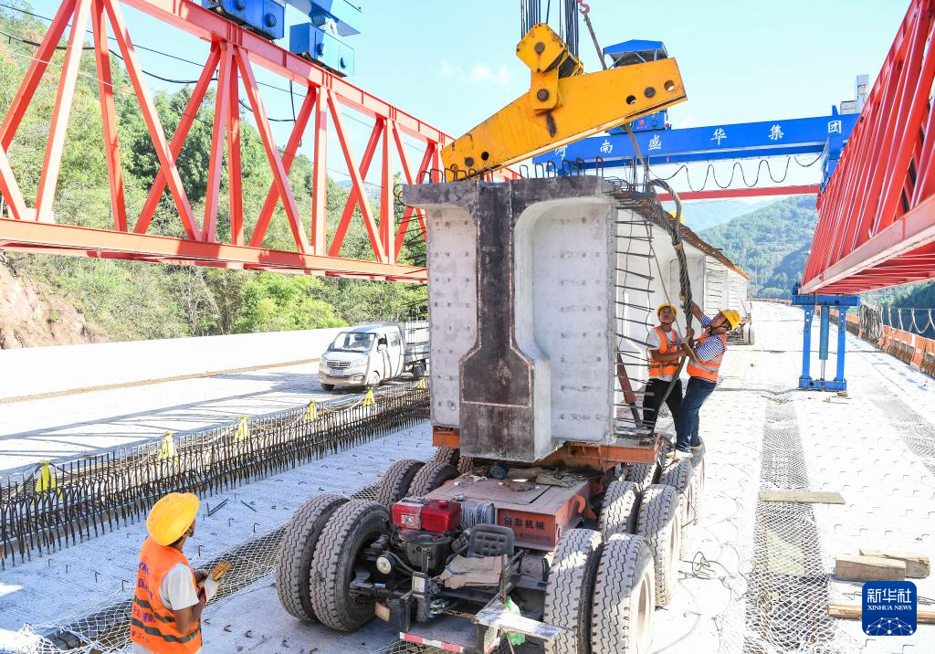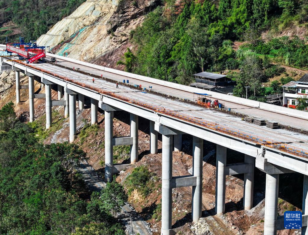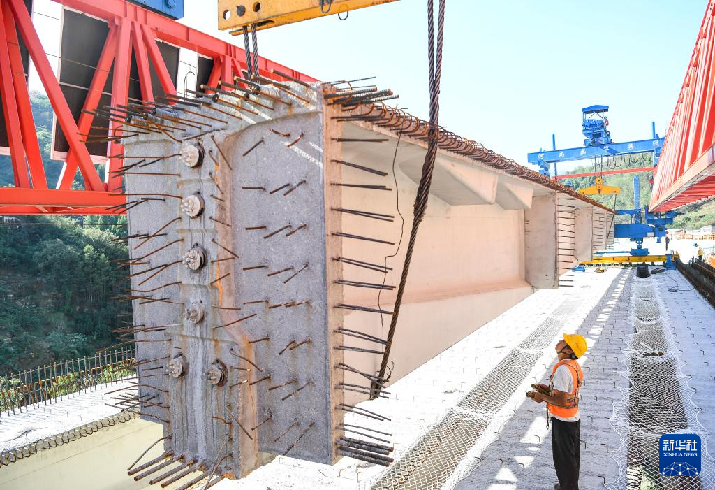 10月18日,工人在万开达高速公路漆树梁大桥项目作业。