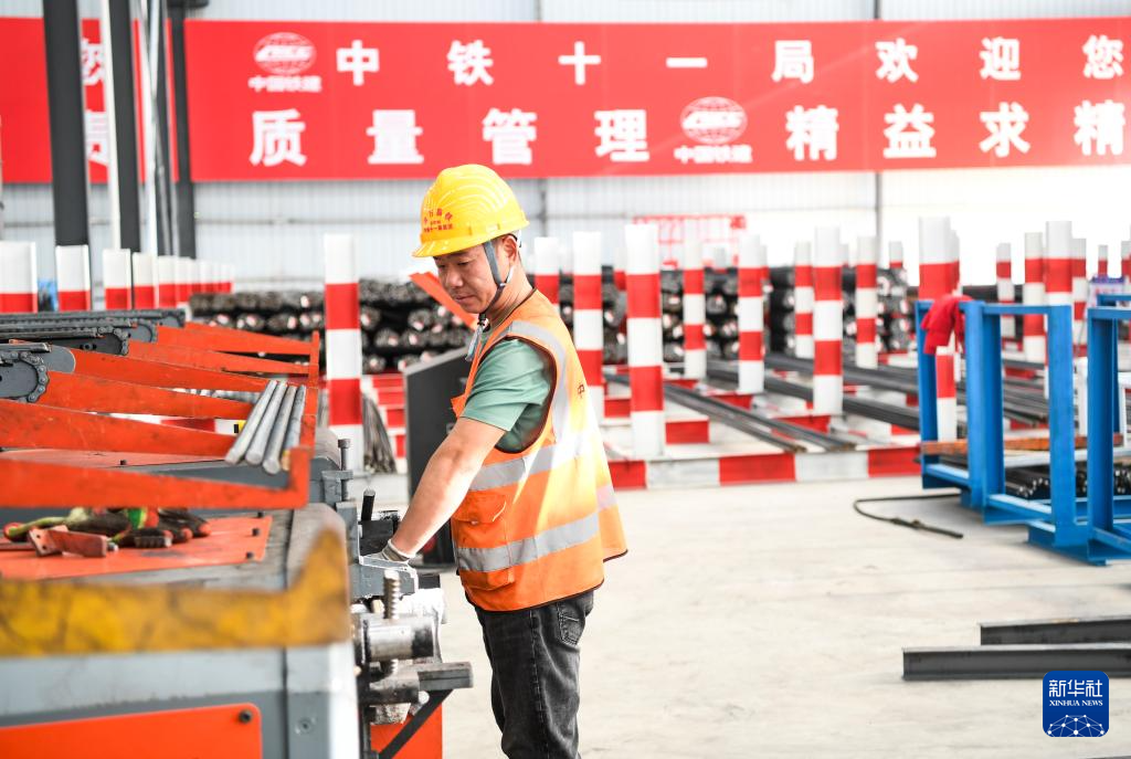 10月18日,工人在中铁十一局渝万高铁万州响水镇制梁场作业。