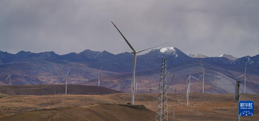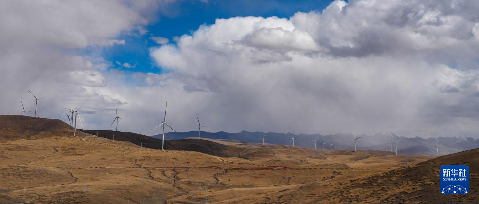 10月17日拍摄的位于西藏日喀则市萨迦县的风力发电机组。