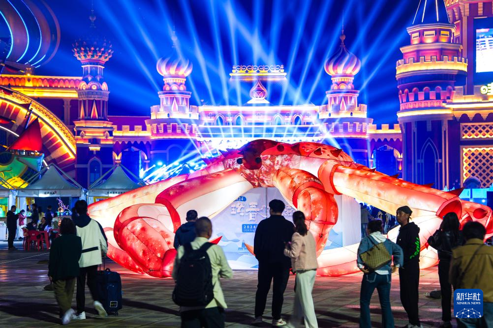 9月19日,游客在吉林省珲春市的2024珲春帝王蟹美食嘉年华现场游玩。
