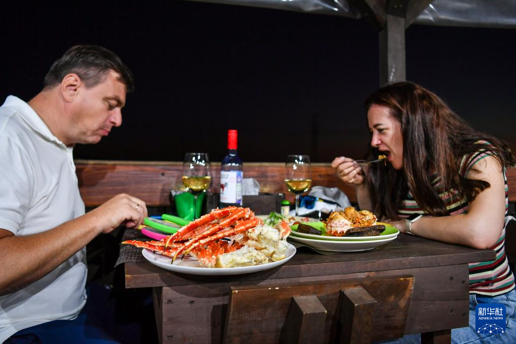 9月2日,食客们在俄罗斯符拉迪沃斯托克的一家餐馆品尝帝王蟹。